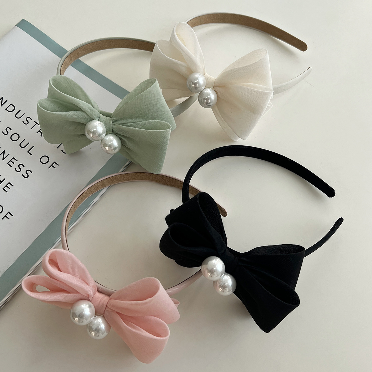 Solid Satin bow with pearl headbands MS0114